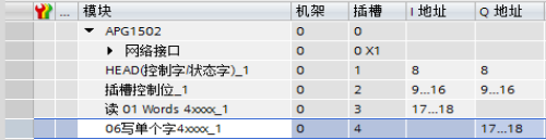 插槽控制:是對相應的槽位的報文控制發送,監控從站回復狀態。對應有輸入字I(4words)輸出字Q(4words)