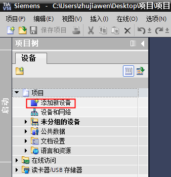 CPU的添加與連接。點擊界面左邊的“項目”,出現(xiàn)下級目錄,并雙擊“添加新設(shè)備”: