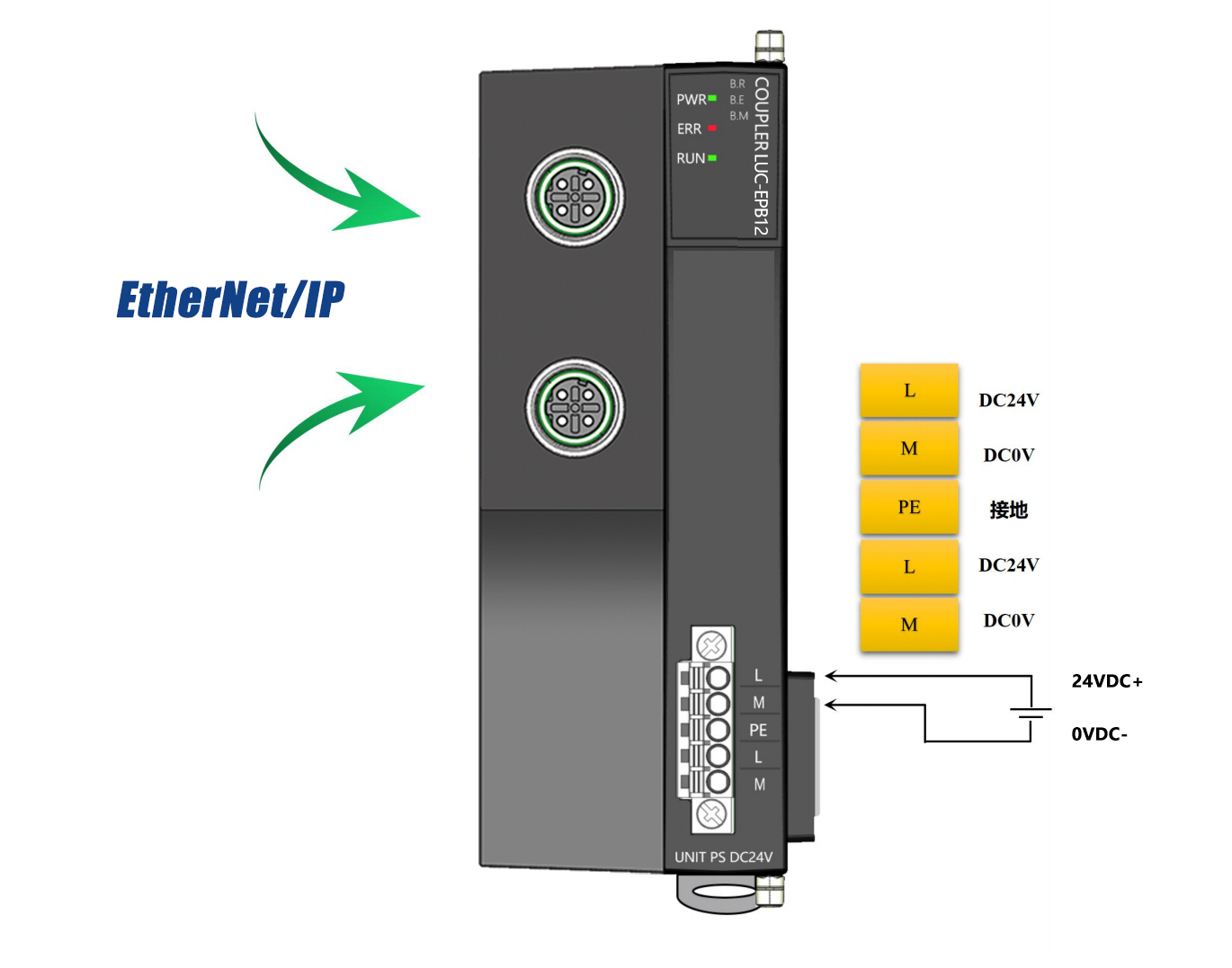 薄片型多功能分布式I/O,ETHERNET/IP耦合器,2xM12,可級聯(lián),可擴展32個模塊,24VDC
