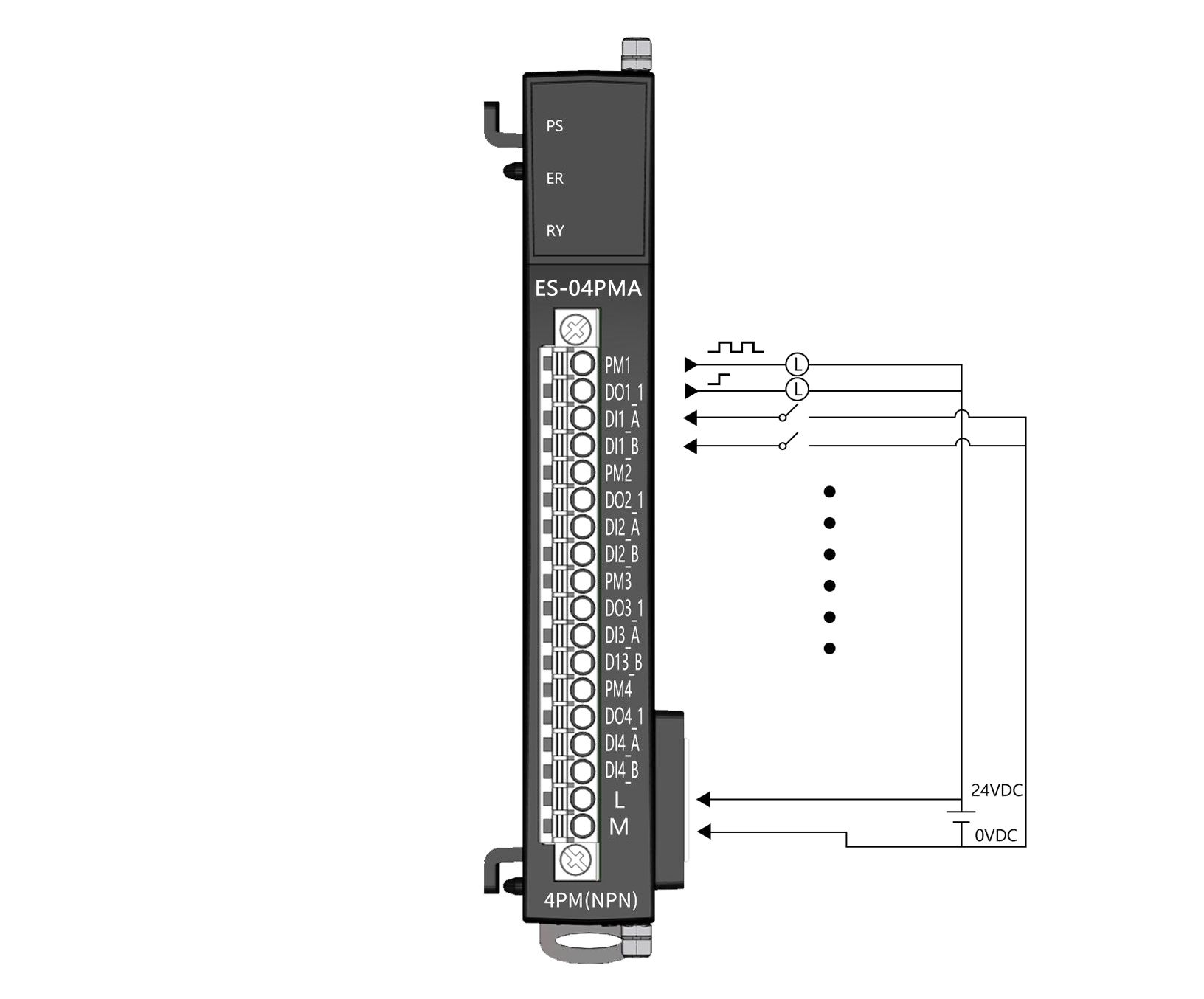 薄片型多功能分布式I/O,4通道高速脈沖輸出,200KHZ/通道,NPN型,4DI,NPN,8DO,NPN,0.5A,24VDC