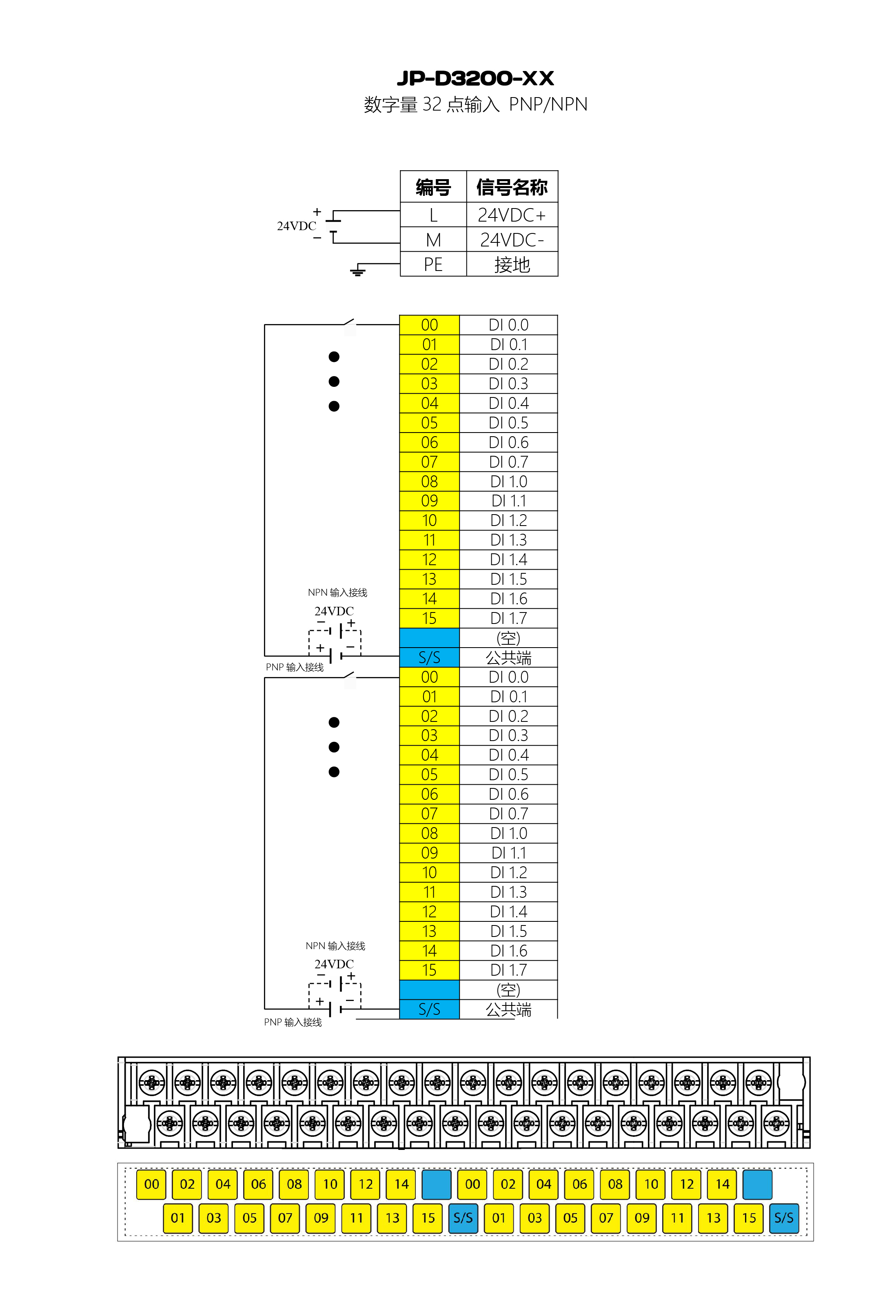 柵欄式螺釘分布式I/O,雙網口,可級聯,支持PROFINET RT協議,32DI_PNP&NPN,24VDC